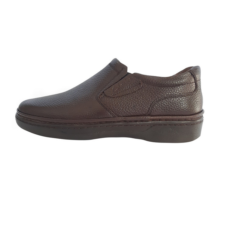 جنس و کفی کفش از چرم طبیعی تولید شده است و زیره آن تزریقی می باشد. برای استفاده روزمره بسیار مناسب و راحت است، بظوریکه فرد در طولانی مدت احساس ناراحتی و خستگی پا نخواهد کرد. فضای مناسب در قسمت پنجه باعث راحتی عملکرد پا می شود. لازم به توضیح است کفش مورد نظر توسط افراد مجرب دست دوز شده است.