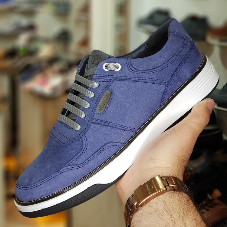 کفش روزمره مردانه مدل چرم طبیعی yerish رنگ آبی