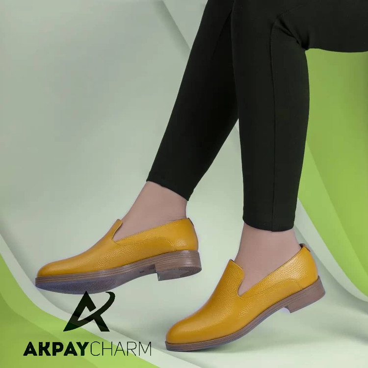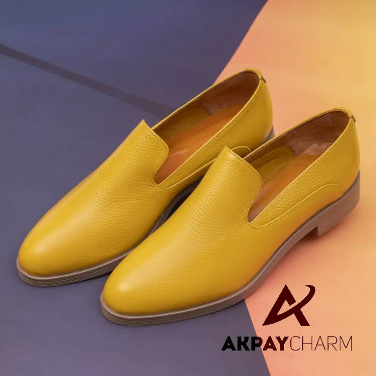 کفش زنانه تمام چرم طبیعی اداری و کژوال (روزمره )زرد مدل موکاسین جدید کد 11051