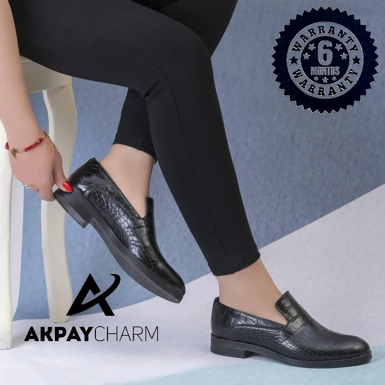 کفش زنانه تمام چرم طبیعی زیره ترمو مناسب استفاده روزمره و محیط اداری سوسماری مشکی قیمت مناسب
