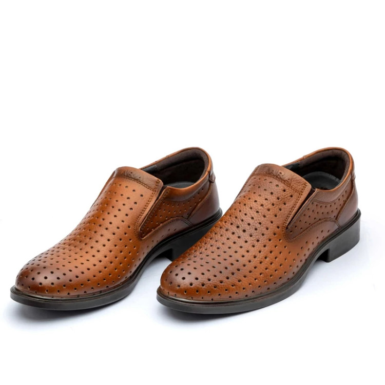 کفش چرم مجلسی مردانه کارا مدل تارا تابستانی بی بند زیره تزریق