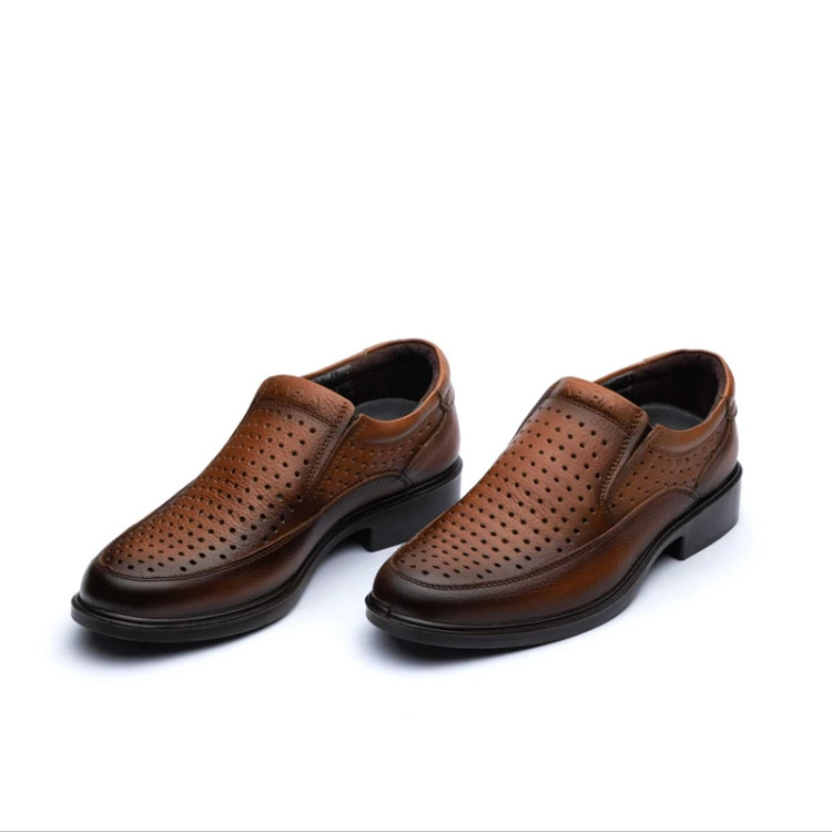 کفش چرم مجلسی مردانه کارا مدل توماج تابستانی بی بند زیره تزریق آستر صنعتی