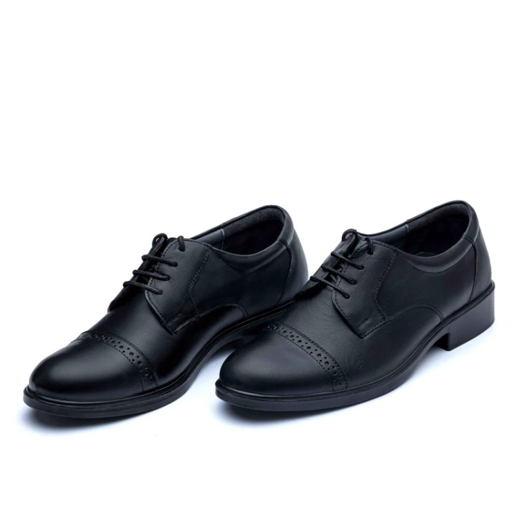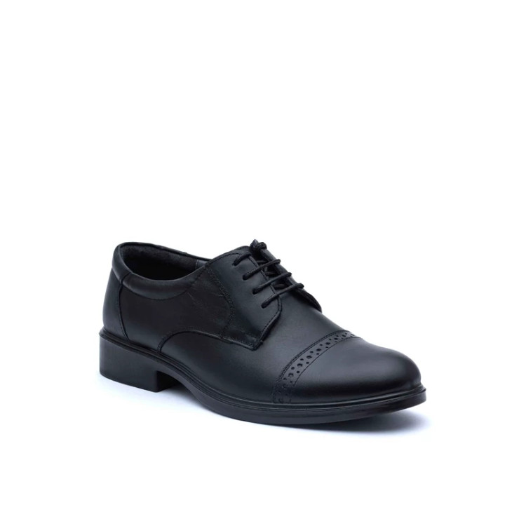 کفش چرم مجلسی مردانه کارا مدل سرپنجه بندی رویه چرم طبیعی زیره تزریق کفی طبی چرم طبیعی