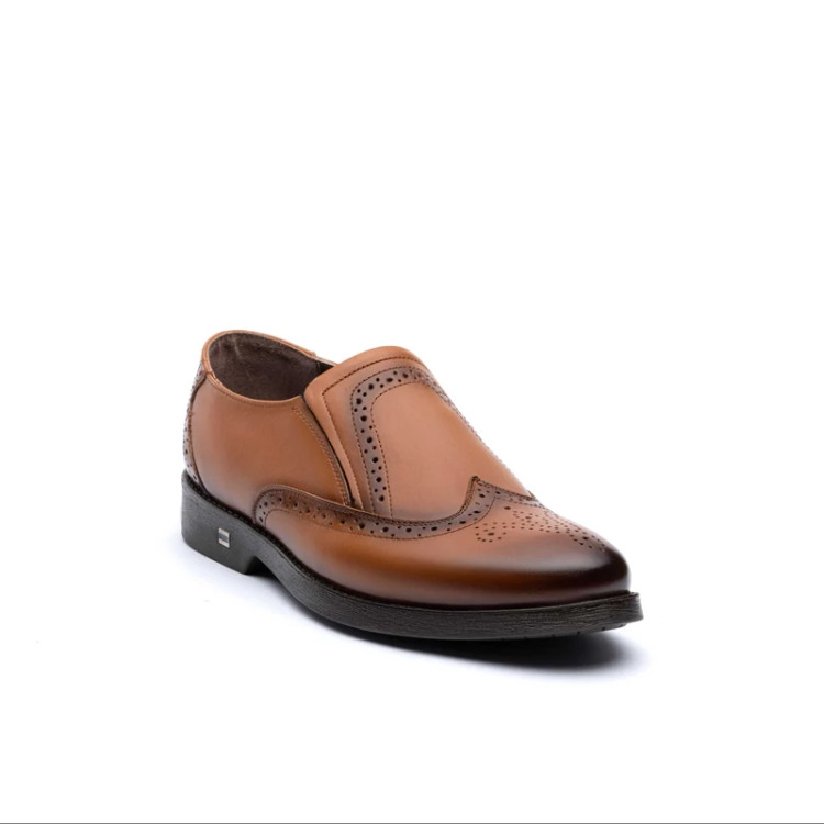 کفش چرم مجلسی مردانه کارا مدل هشترک بی بند زیره ترمو کفی طبی چرم طبیعی