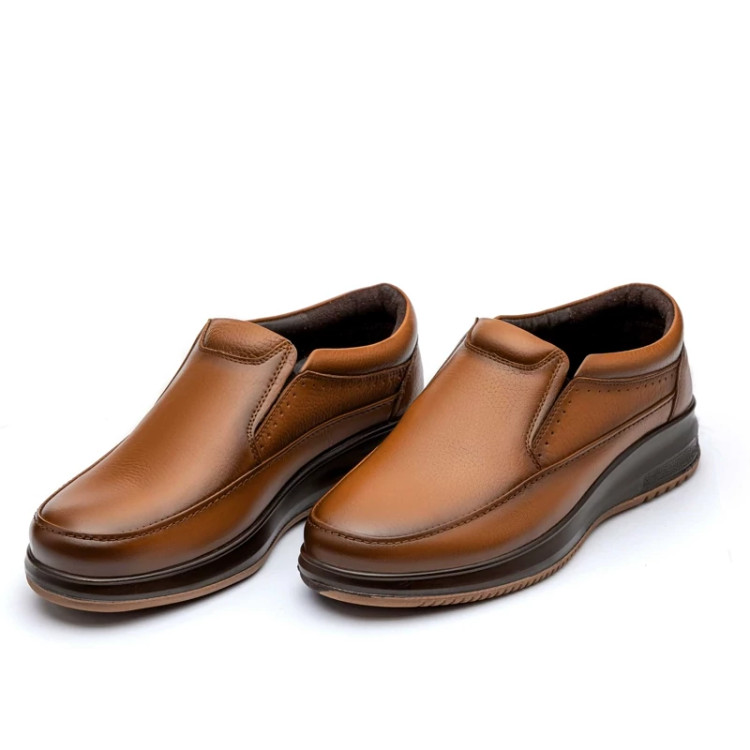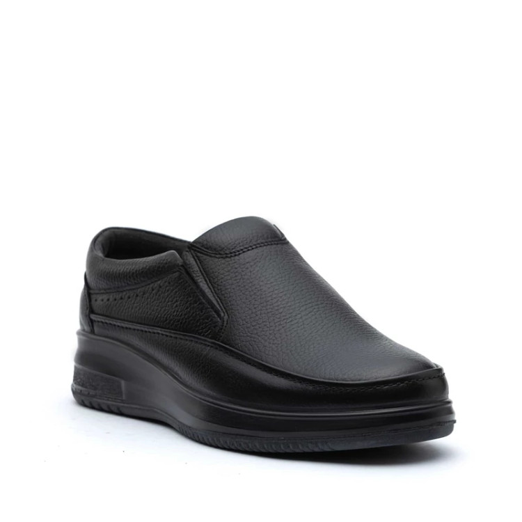 کفش چرم روزانه مردانه کارا مدل رویال بی بند زیره تزریق دو رنگ کفی طبی چرم طبیعی