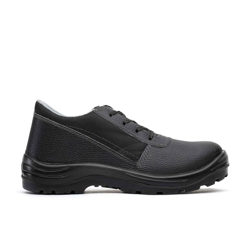 کفش چرم ایمنی اصل تبریز با رویه چرم اشبالت، آستر پارچه ای سه لایه ابردار، کفی سوئیت 2 تکه و زیره پی یو سرپنجه های فولادی یا کامپوزیتی (طبق انتخاب مشتری) در رنگ های مشکی و خاکی سایز بندی 40،41،42،43،44،45 نحوه بسته شدن به صورت بندی