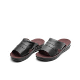 دمپایی چرم اصل تبریز با رویه چرم طبیعی، آستر چرم صنعتی، کفی سوئیت پارچه ای ضد تعریق و زیره تزریق مستقیم در رنگ های مشکی، عسلی، قهوه ای سایز بندی 40,41,42,43,44,45
