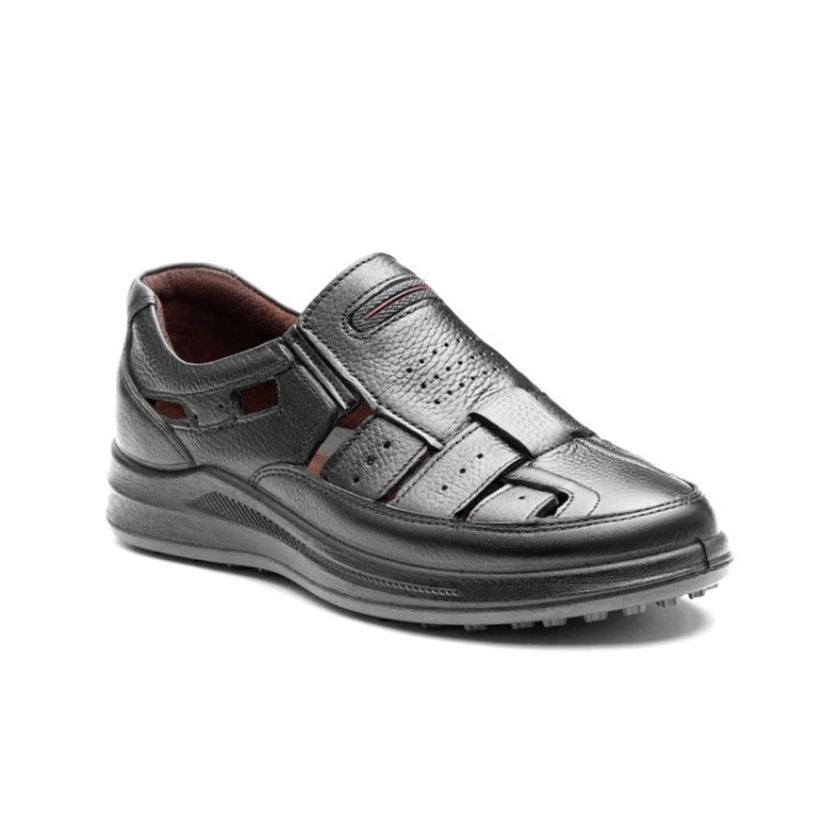 کفش چرم اصل تبریز با رویه چرم طبیعی، آستر چرم صنعتی، کفی سوئیت پارچه ای و زیره تزریق دو رنگ در رنگ های مشکی، عسلی، قهوه ای سایز بندی 40,41,42,43,44,45 نحوه بسته شدن به صورت بی بند